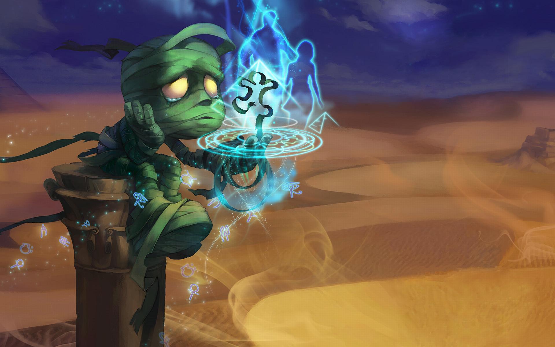 Description: A cartoon character holding a candle in a desert area with a sky background and a blue flame coming out of it.