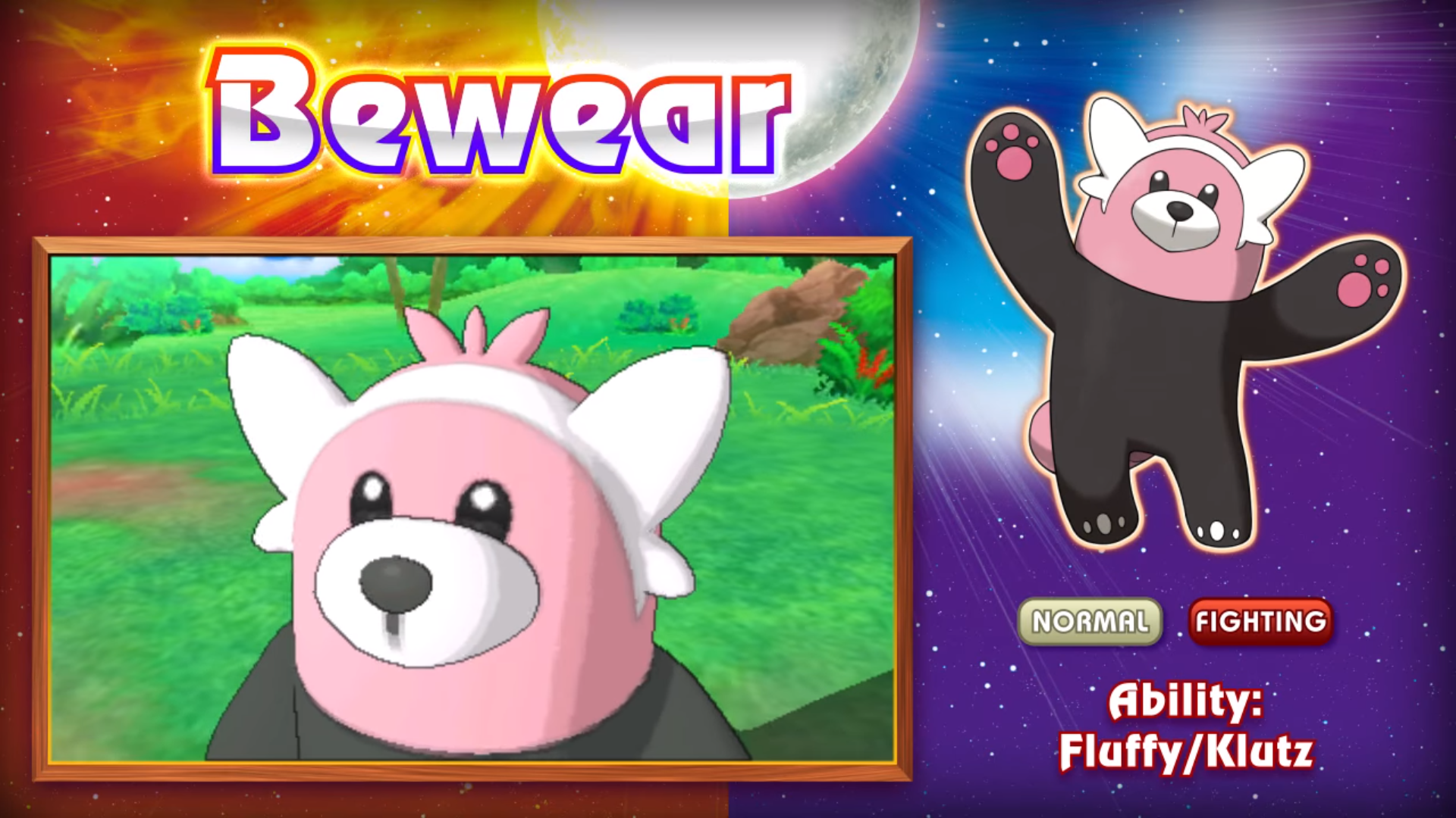 Description: A cartoon character with a picture of a cat and a bear in front of a background of a sun.