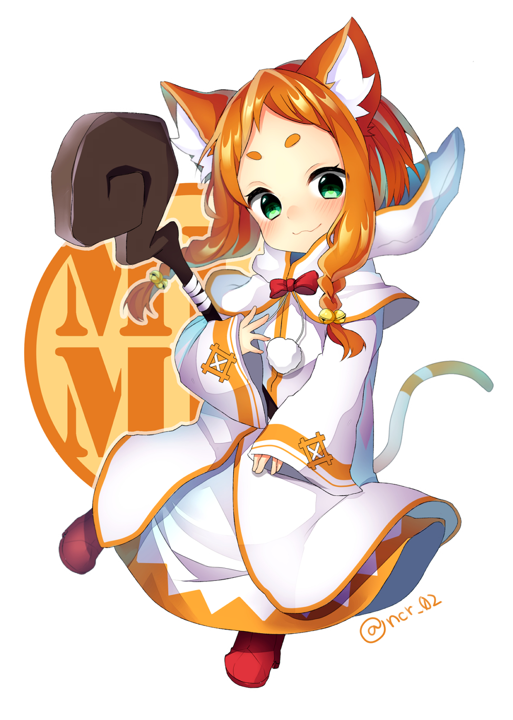 Description: A cartoon character with a cat costume and a hat on her head and a cat tail on her head.