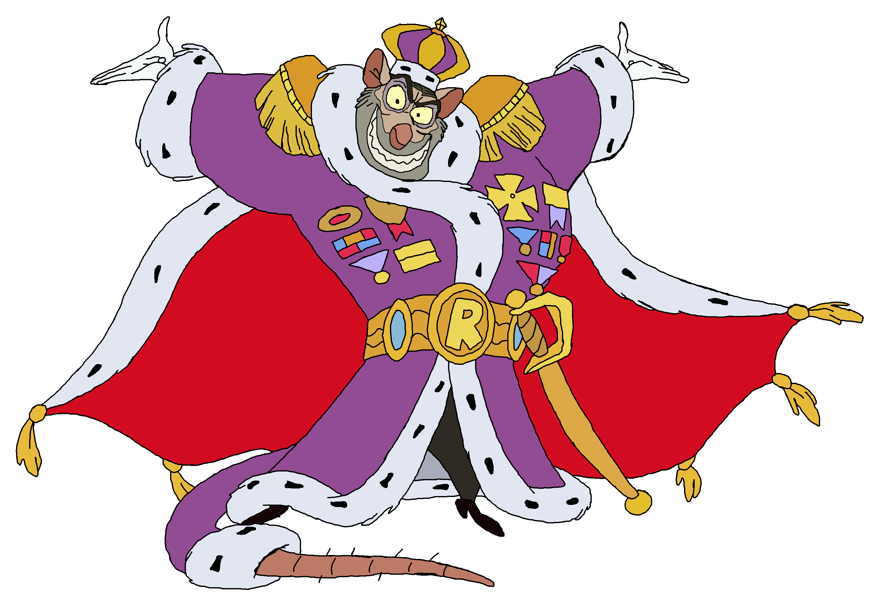 Description: A cartoon character dressed in a costume and a hat with a large tail and a large nose and a large tail.