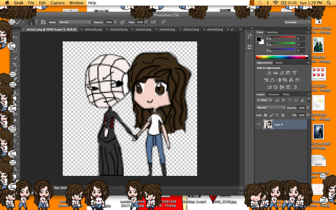 Description: A cartoon character is being drawn on a computer screen with a woman and a man in the background.
