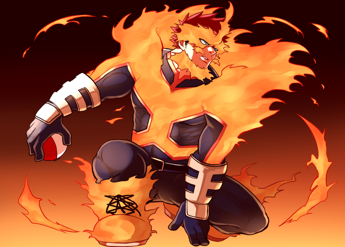 Description: A cartoon character with a fireball in his hand and a fireball in his other hand.