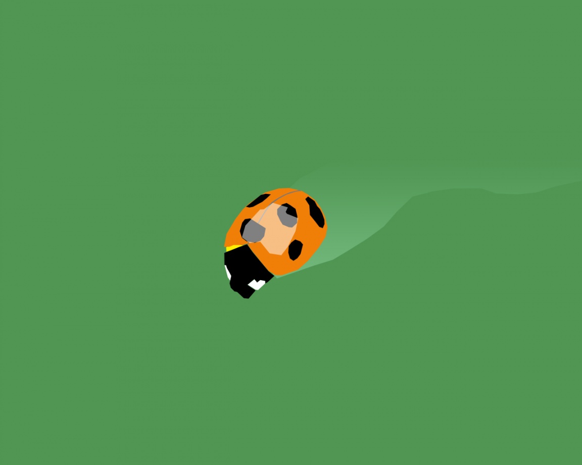 Description: A cartoon character is floating in the air on a green surface with a shadow of a person on it.