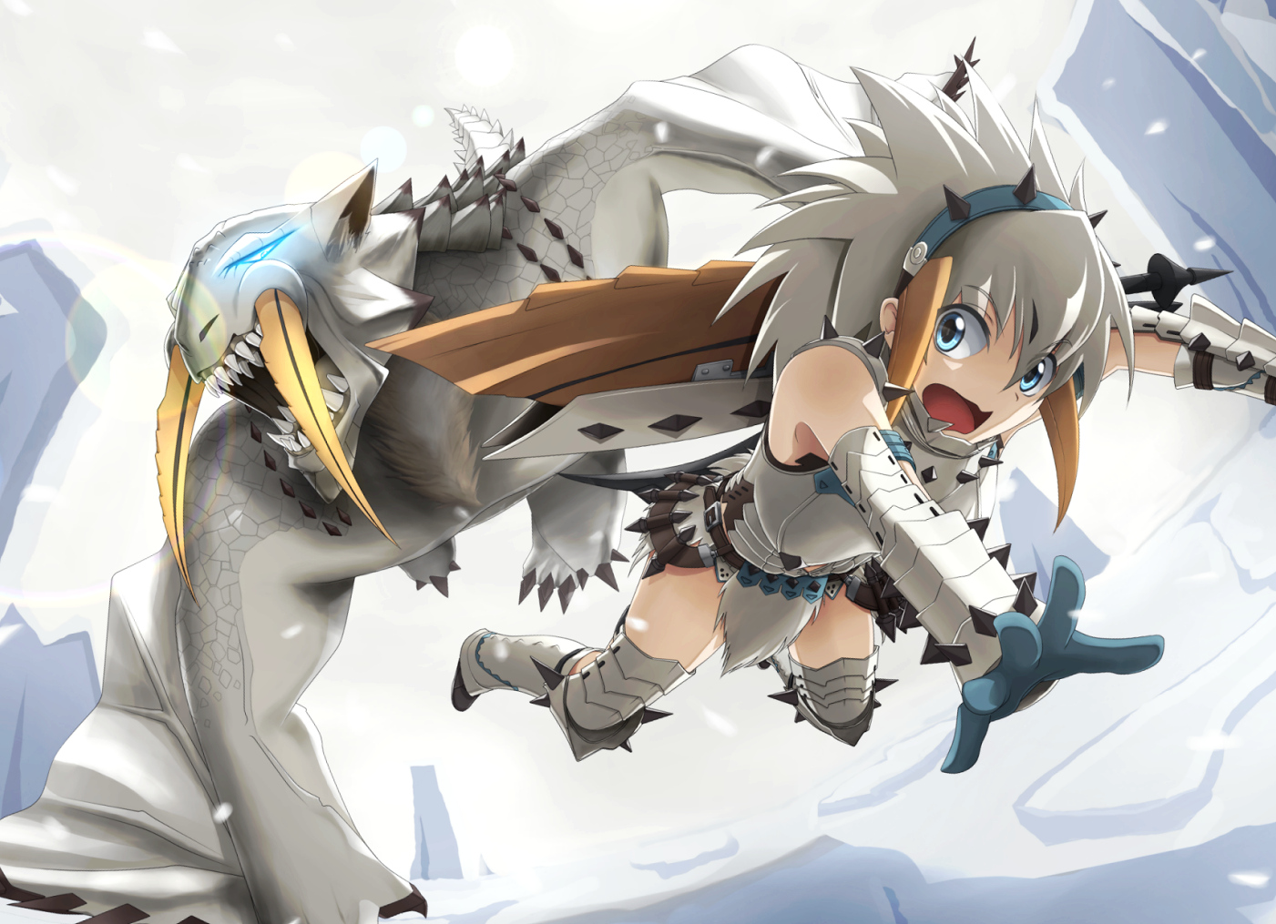 Description: A cartoon character is flying through the air with a sword in her hand and a helmet on her head.