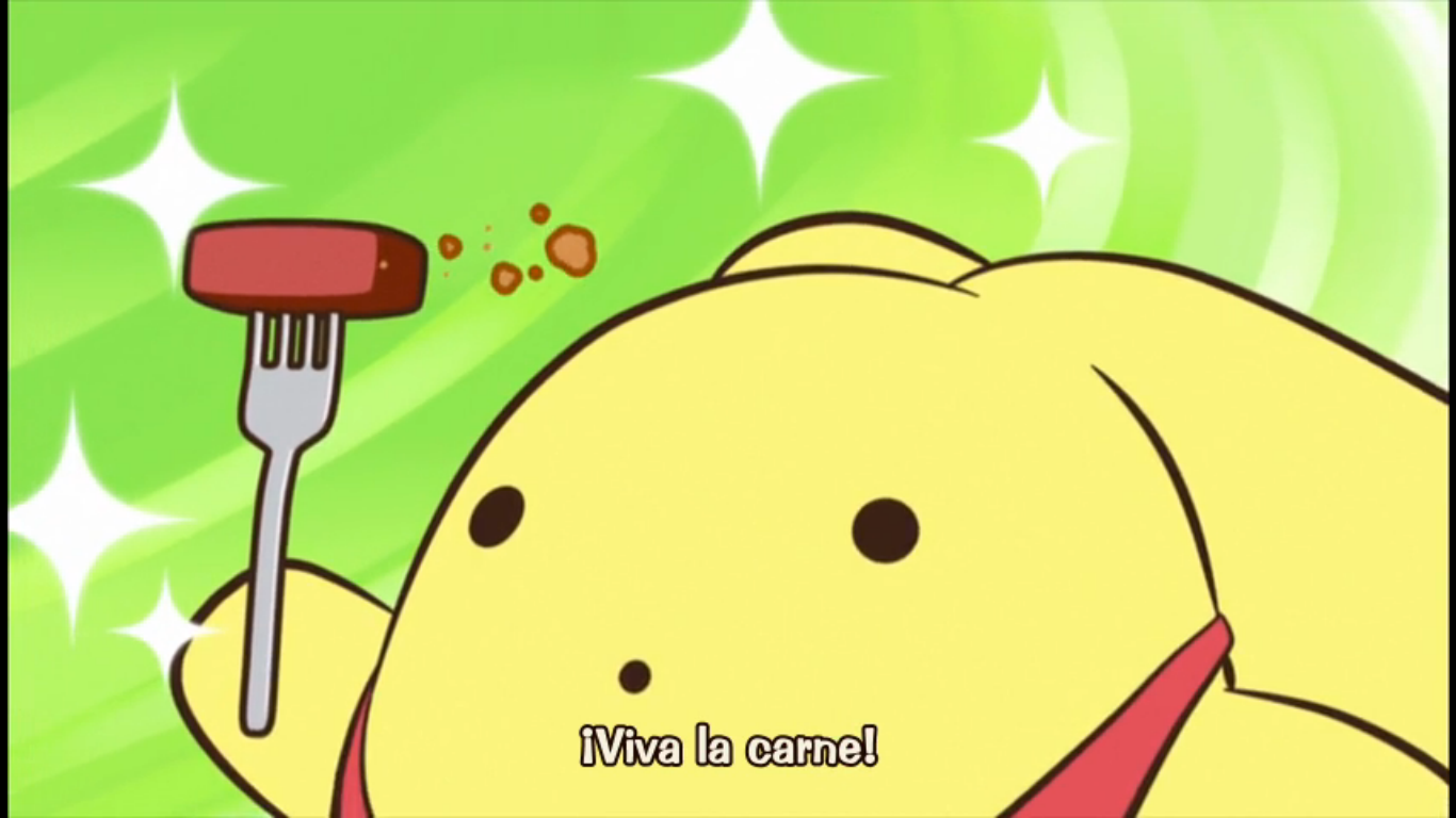 Description: A cartoon character with a fork and a knife in his hand and a caption that reads.