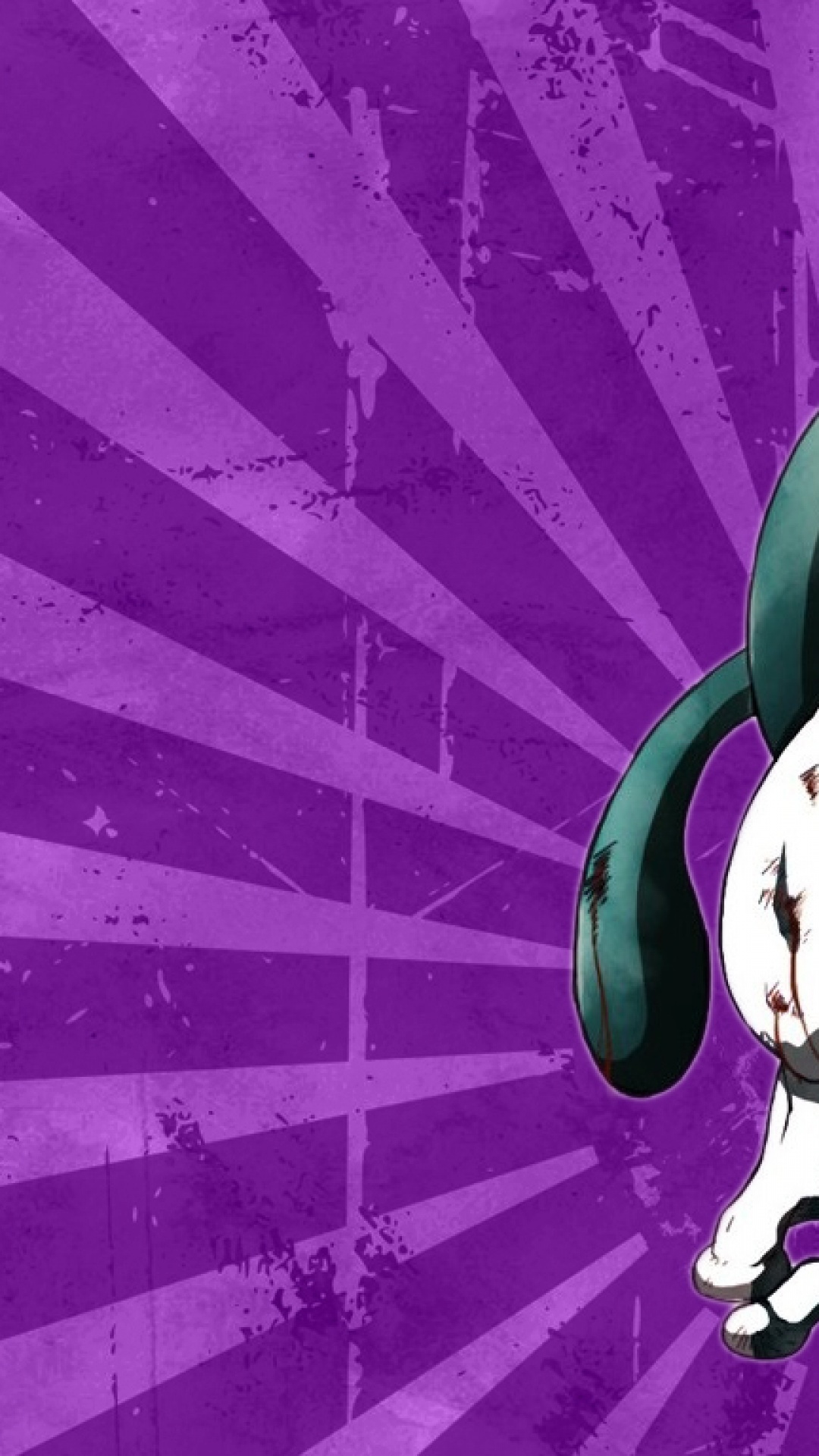 Description: A cartoon character with a hat and a purple background with a sunburst pattern on it's face.