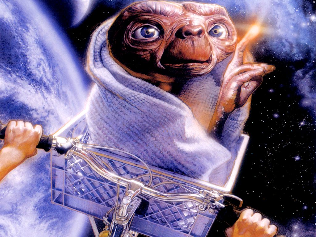 Description: A cartoon character holding a bike in front of a space background with a planet in the background and a person holding a bike.