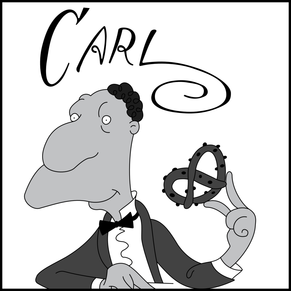 Description: A cartoon character holding a car with the word cari in it's mouth and a car key in his hand.