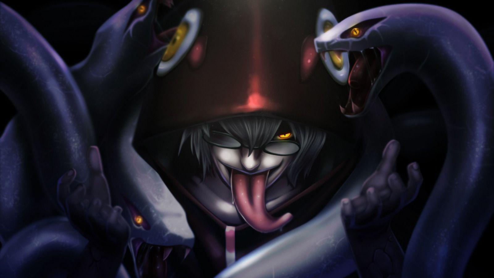 Description: A cartoon character with a large tongue sticking out of his mouth and a large snake around his neck.