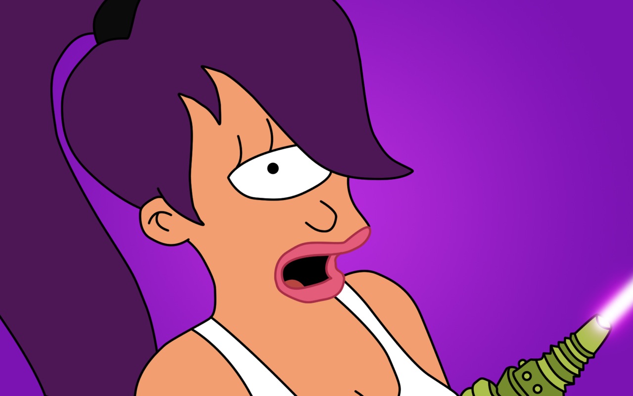 Description: A cartoon character holding a light saber in her hand and a purple background with a black outline of a woman.