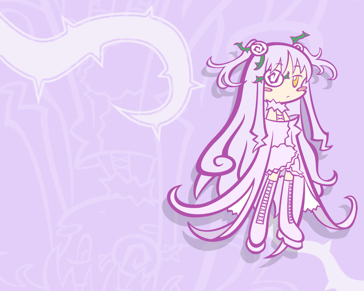 Description: A cartoon character with long hair and a purple background with a white outline on it.
