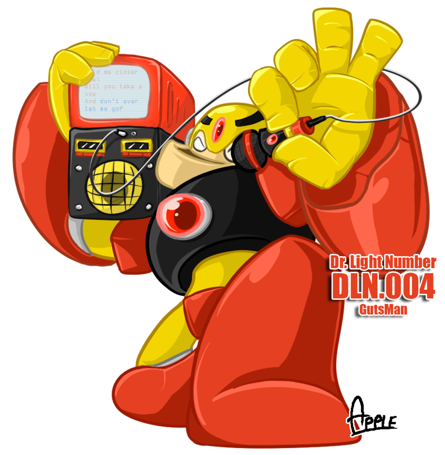 Description: A cartoon character with a radio in his hand and a red shirt on his chest.
