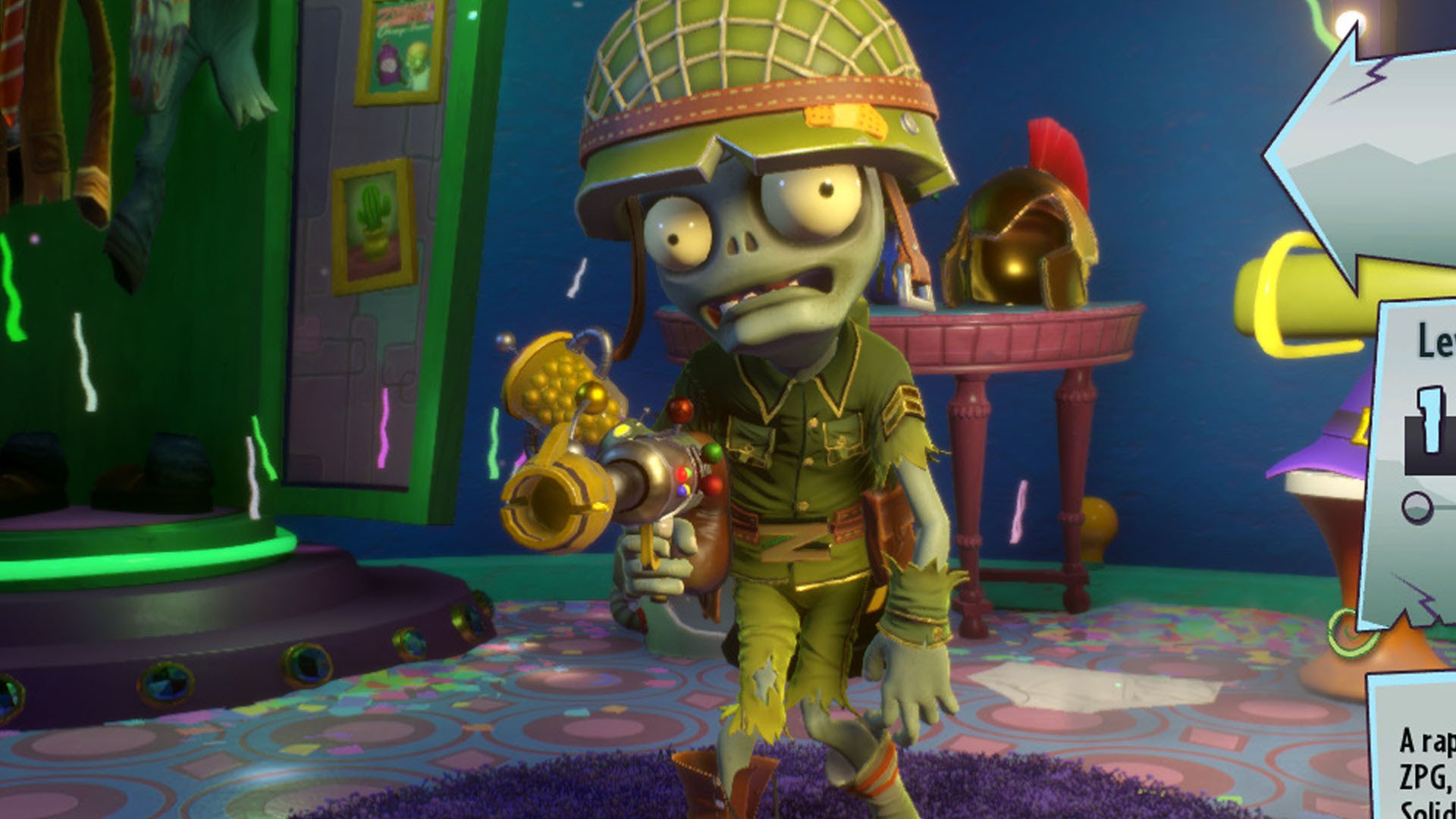 Description: A cartoon character in a room with a sign and a clock on the floor and a sign that says let's do it.