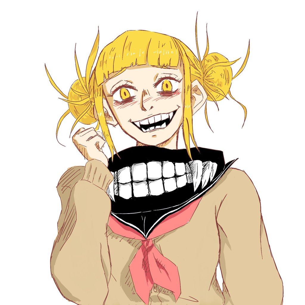Description: A cartoon character with a smile on her face and a mouth open and a tie around her neck.