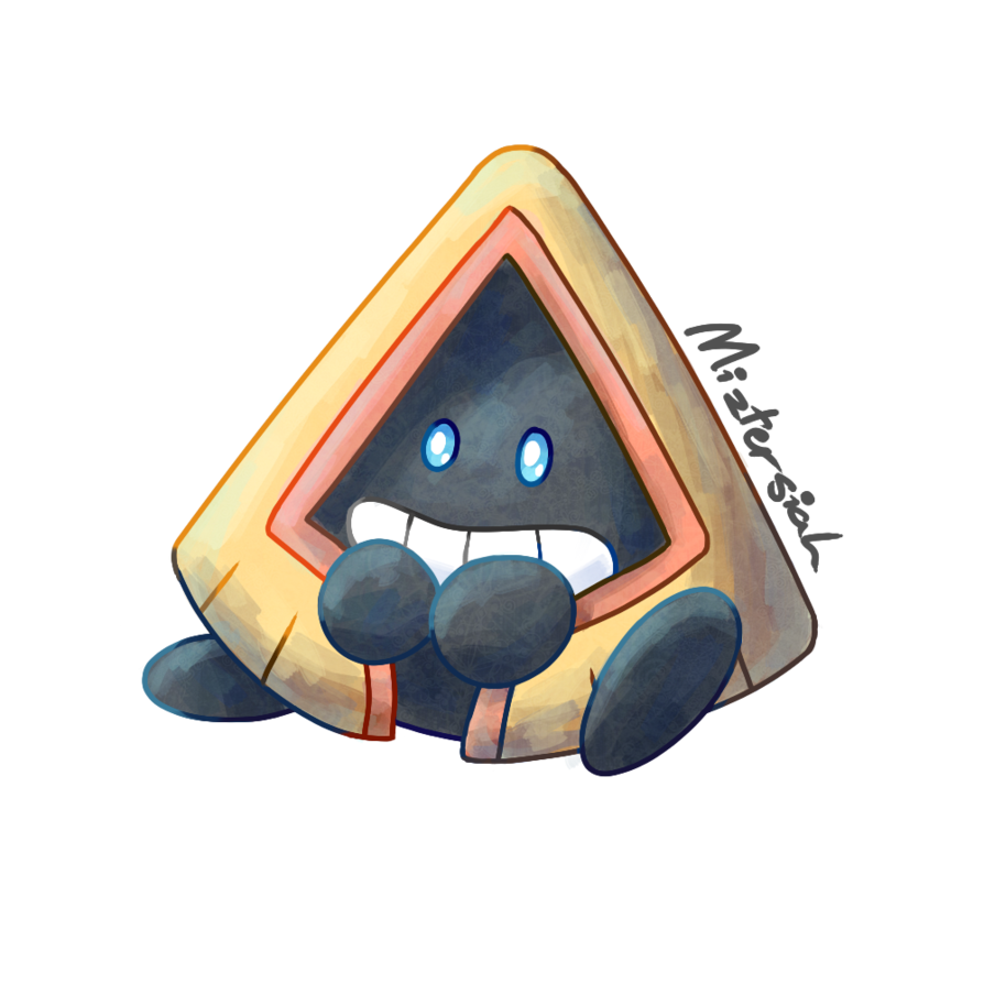 Description: A cartoon character sitting on the ground with a smile on his face and eyes wide open.