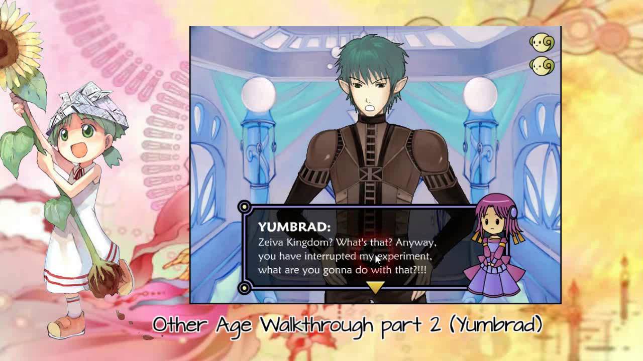 Description: A cartoon character with a sunflower in front of a picture of a woman and a man in a dress.