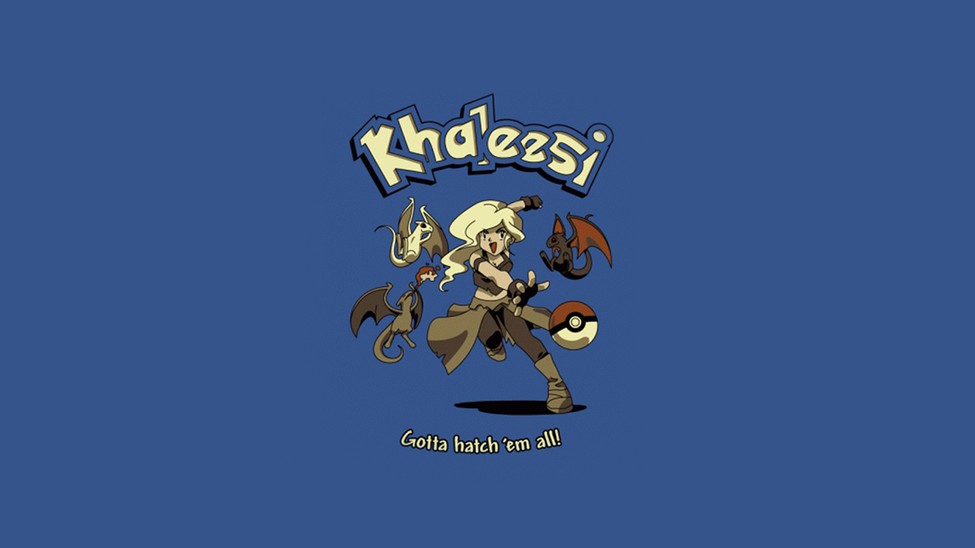 Description: A cartoon character with a sword and a dragon on a blue background with the words khadeesi.