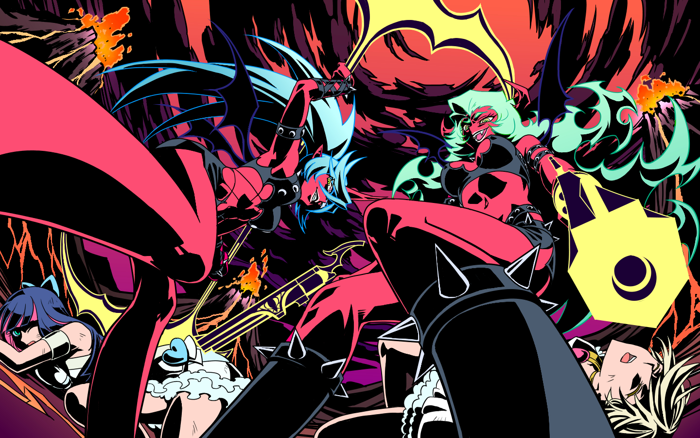 Description: A bunch of cartoon characters are in a colorful background with a black cat and a pink and yellow background.