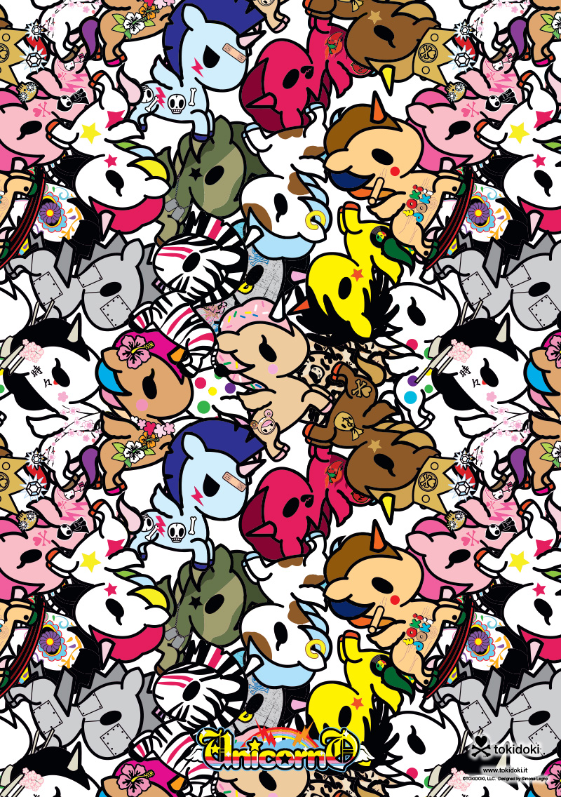 Description: A bunch of cartoon characters on a white background with a lot of colors and shapes on it.