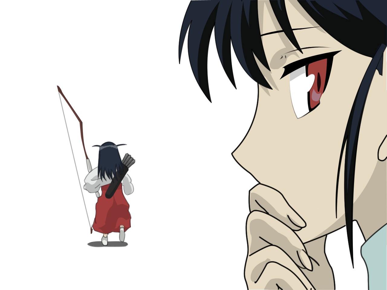 Description: A cartoon character holding a fishing rod next to a cartoon character with a hat on and a red dress.