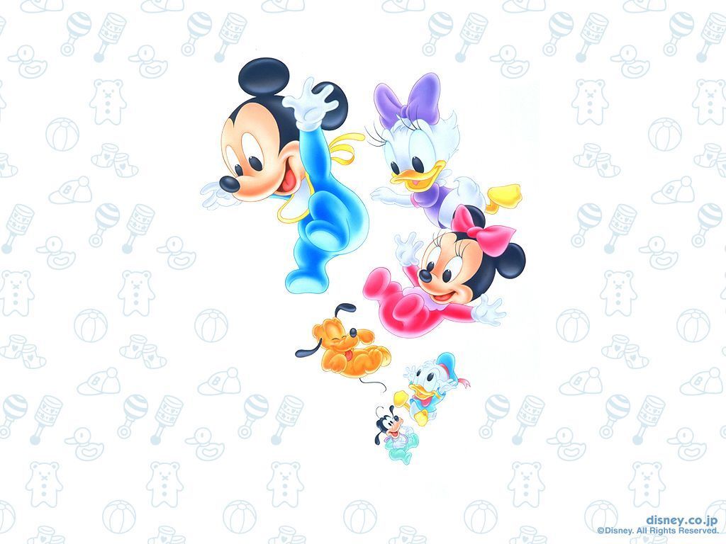 Description: A group of cartoon characters on a white background with a mickey mouse and pluto mouse on it's back.