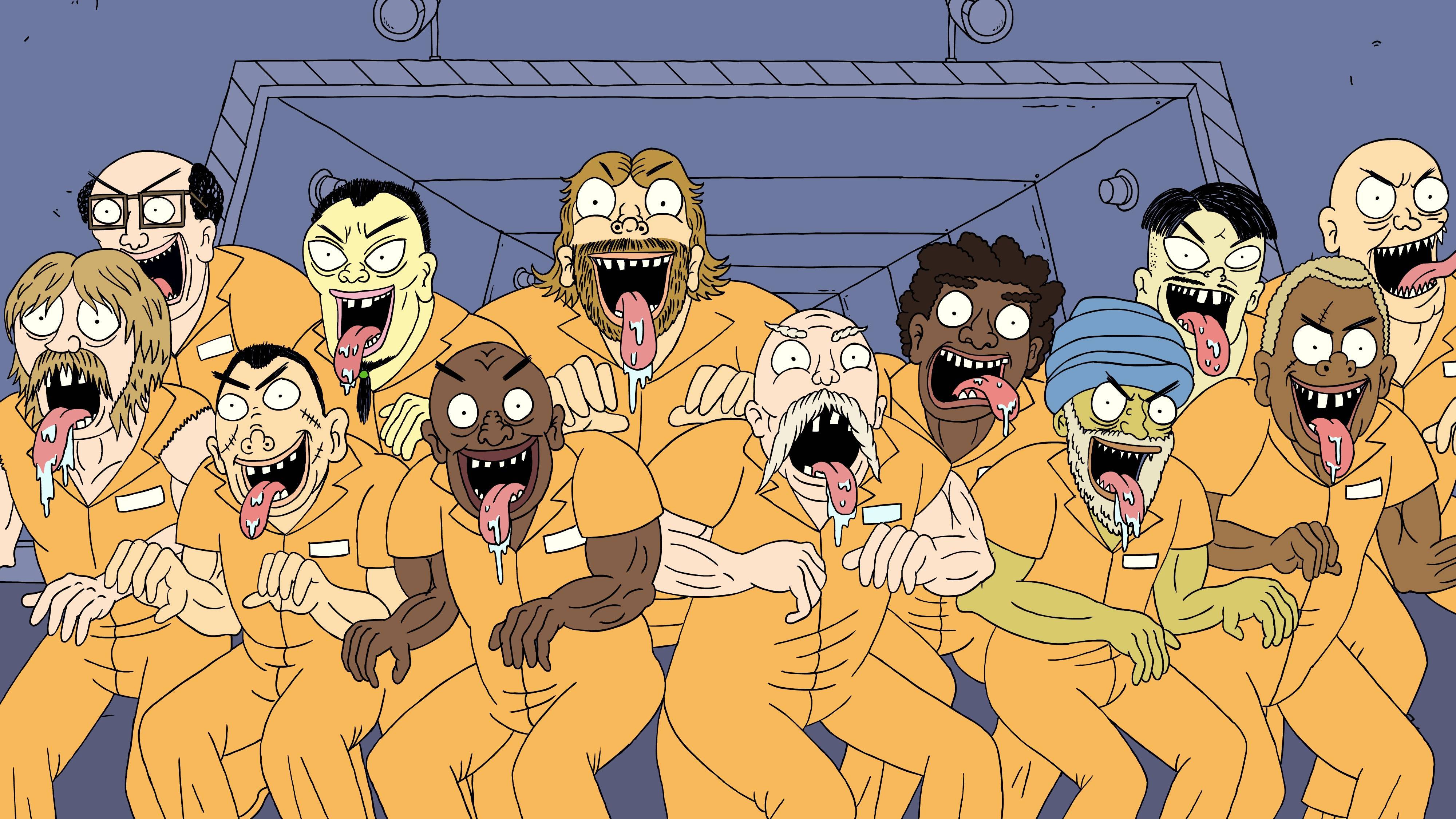 Description: A group of cartoon characters with mouths open and eyes wide open.