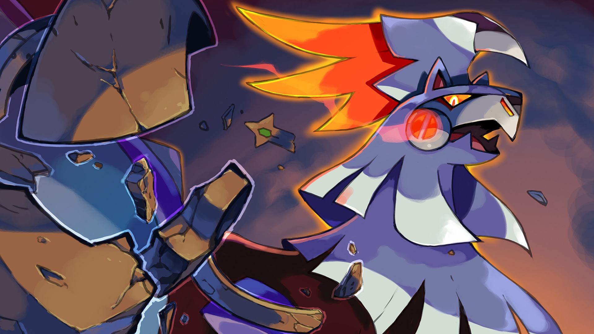 Description: A couple of cartoon characters standing next to each other in front of a sky background with stars and a fire.