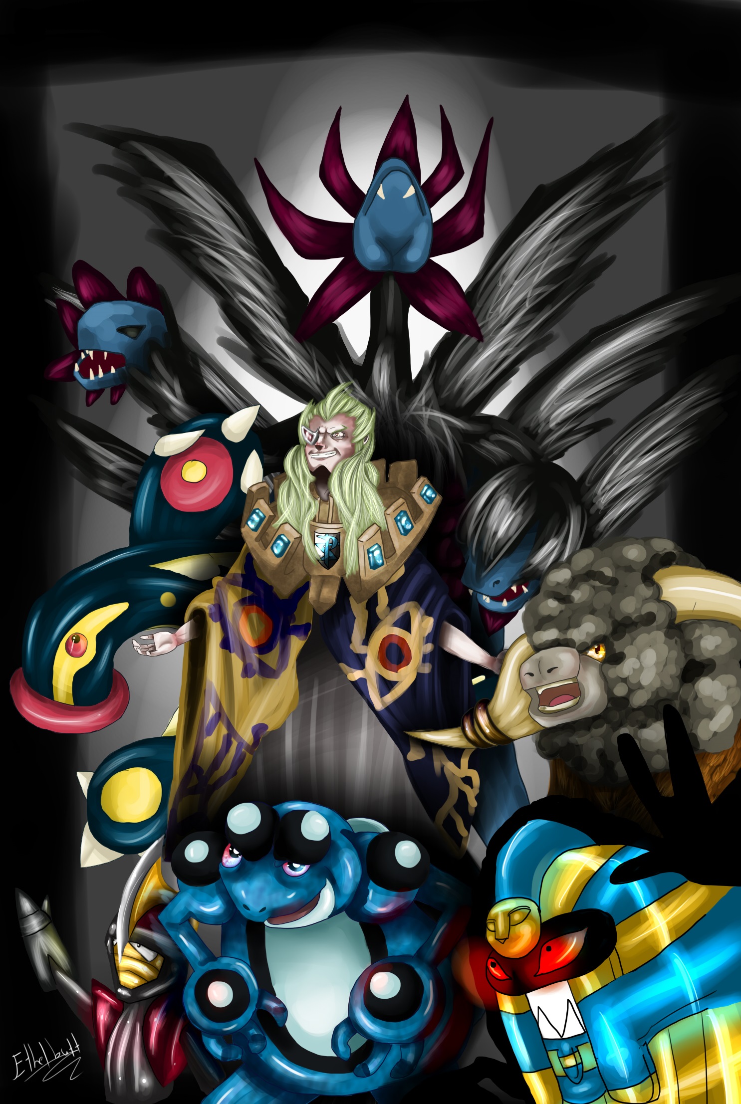 Description: A bunch of different cartoon characters with wings on them and a demon on the back of the character.