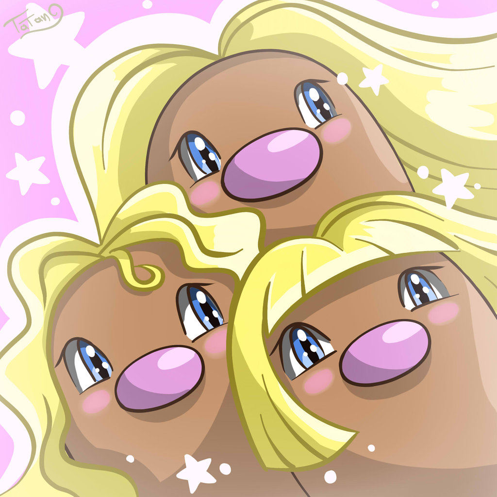 Description: A couple of cartoon characters with blonde hair and blue eyes and nose rings.