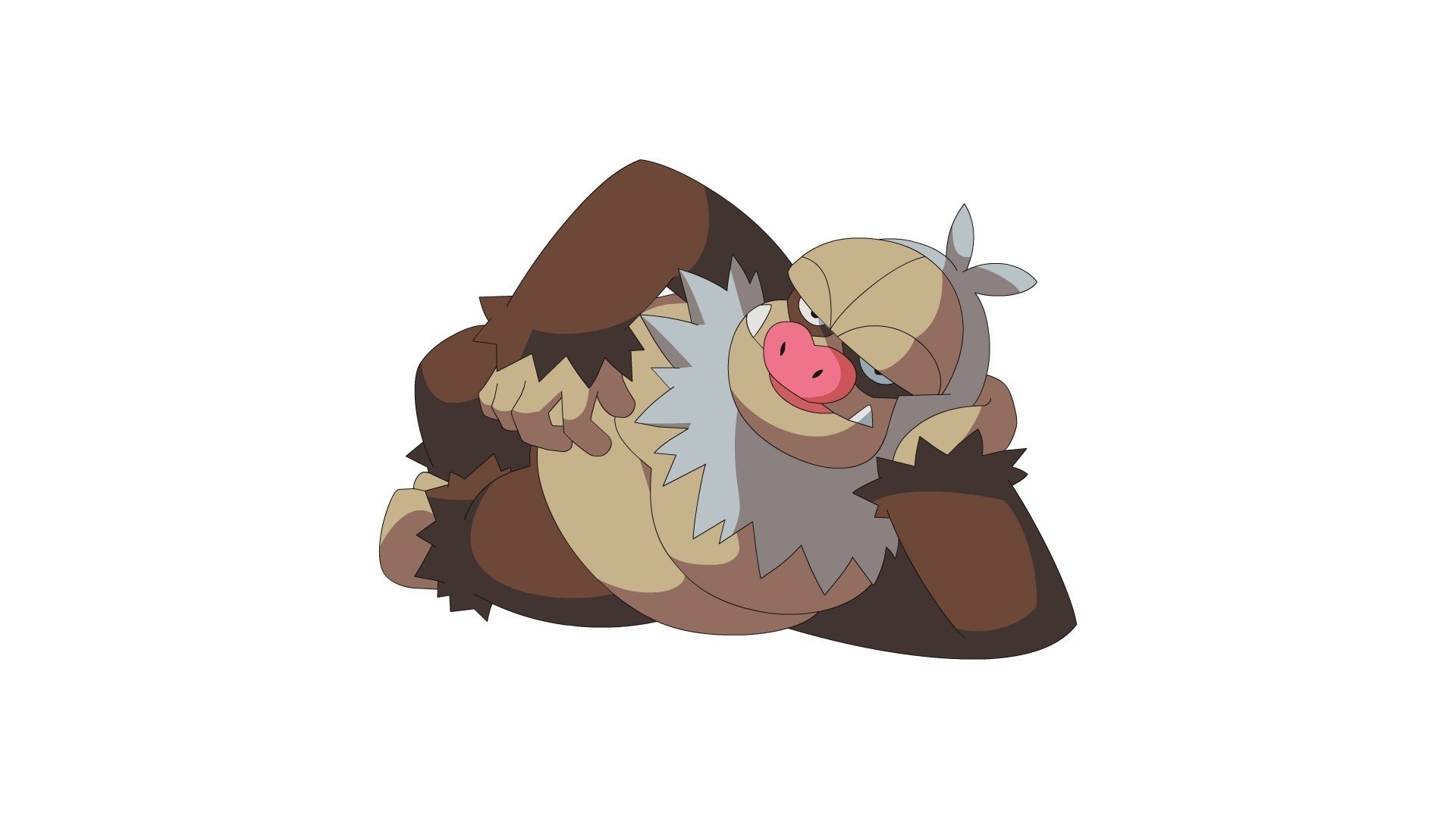 Description: A cartoon cow with a pink nose and a big nose sitting down on the ground with its legs spread out.