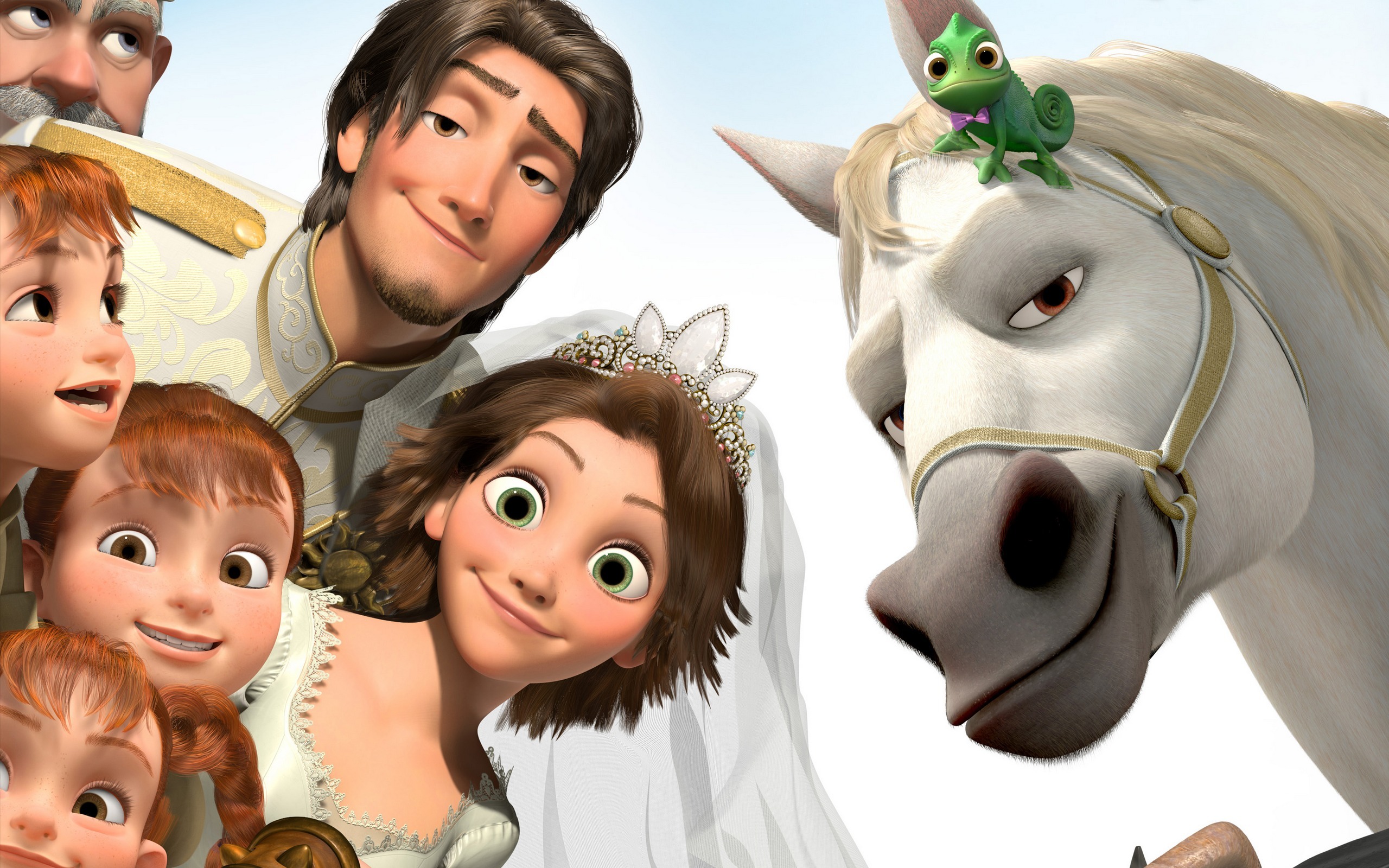 Description: A cartoon of a family with a horse and a princess and prince in the background with a frog on their forehead.