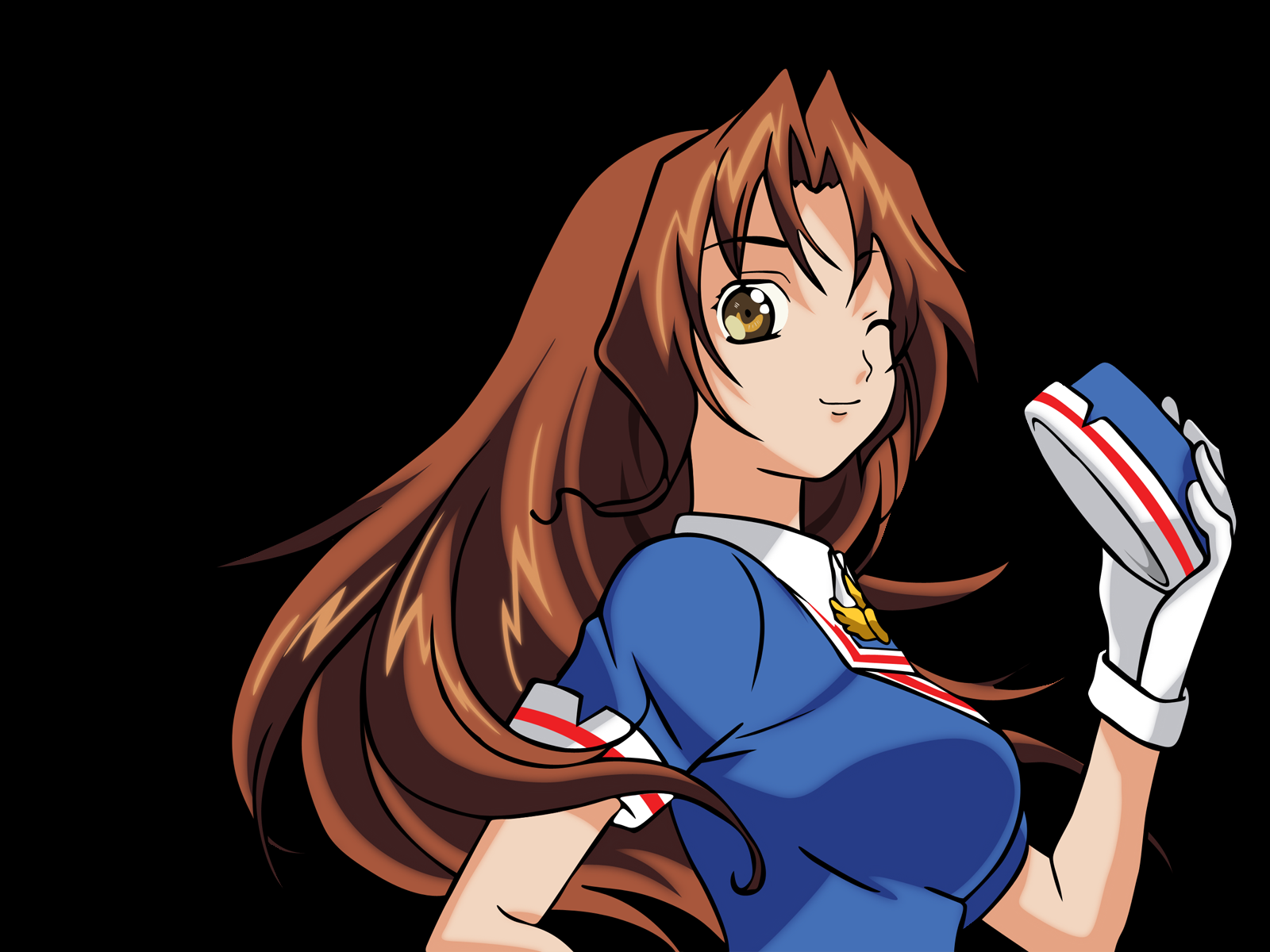 Description: A cartoon girl with long hair holding a baseball glove in her hand and a baseball cap in her hand.