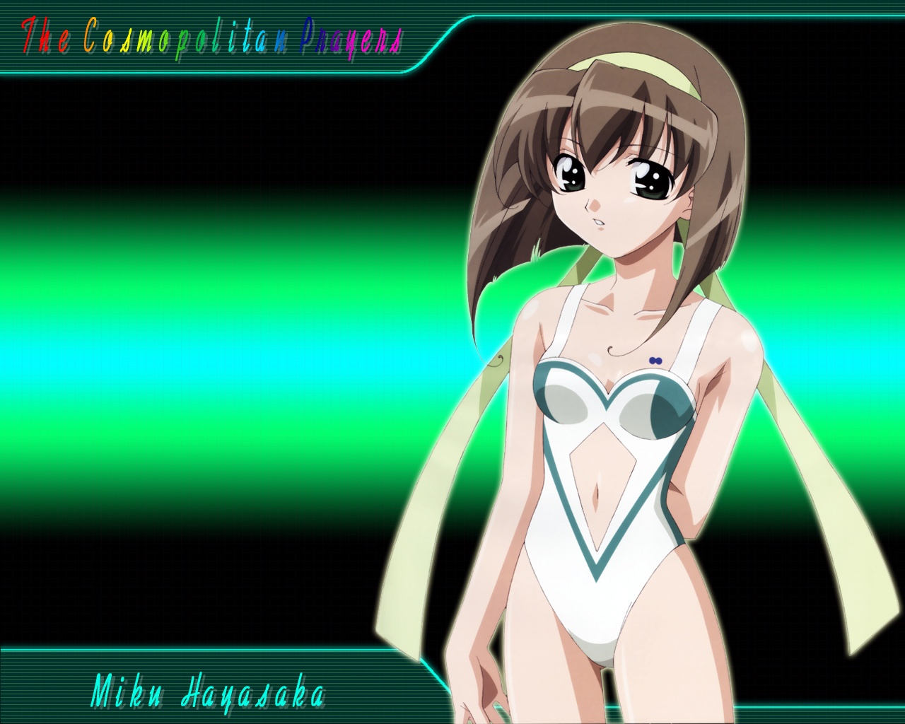 Description: A cartoon girl in a bikini with a green background and a green light behind her is a green and white background.