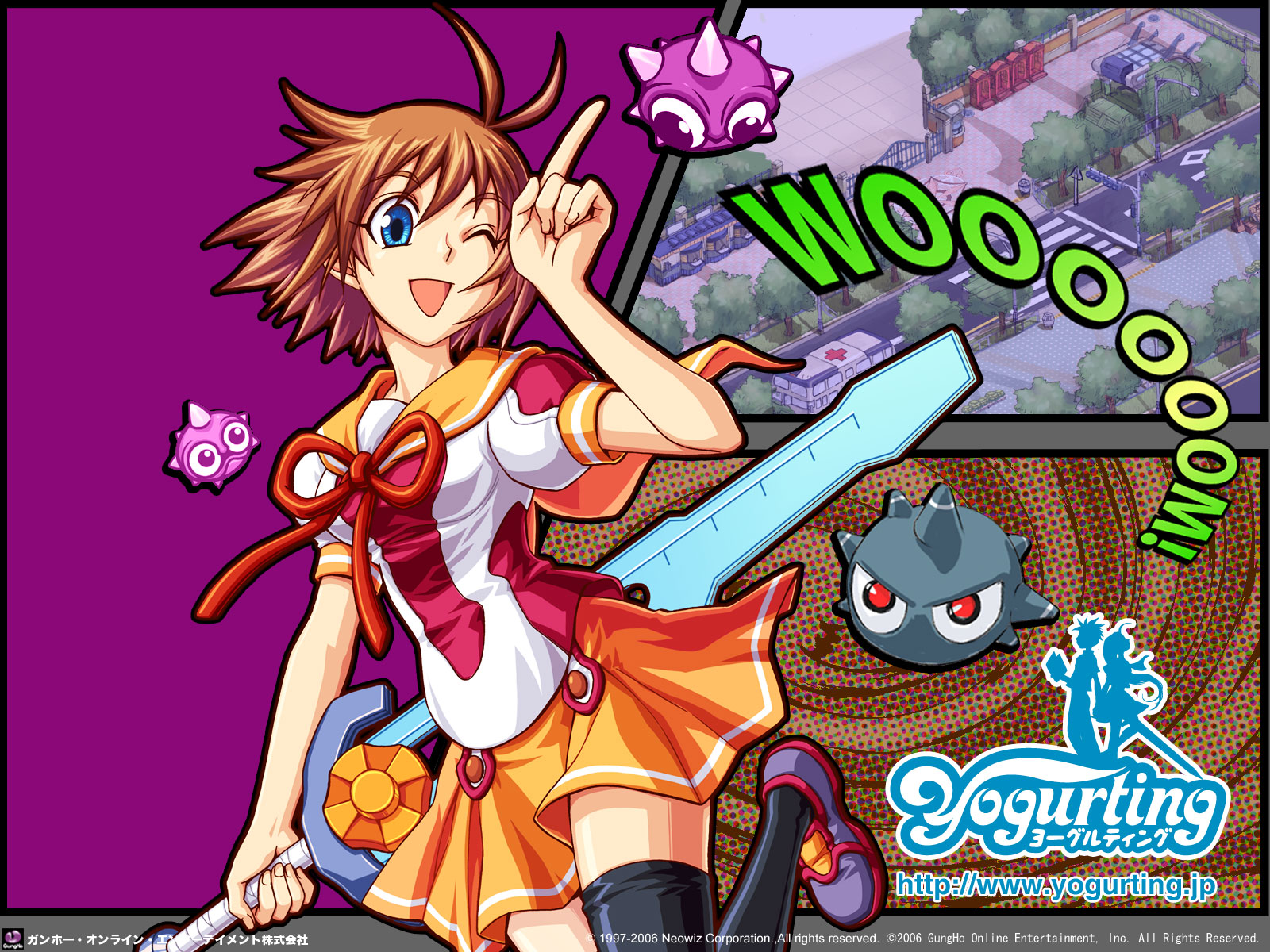 Description: A cartoon character holding a giant knife in front of a purple background with a cartoon character in the background.