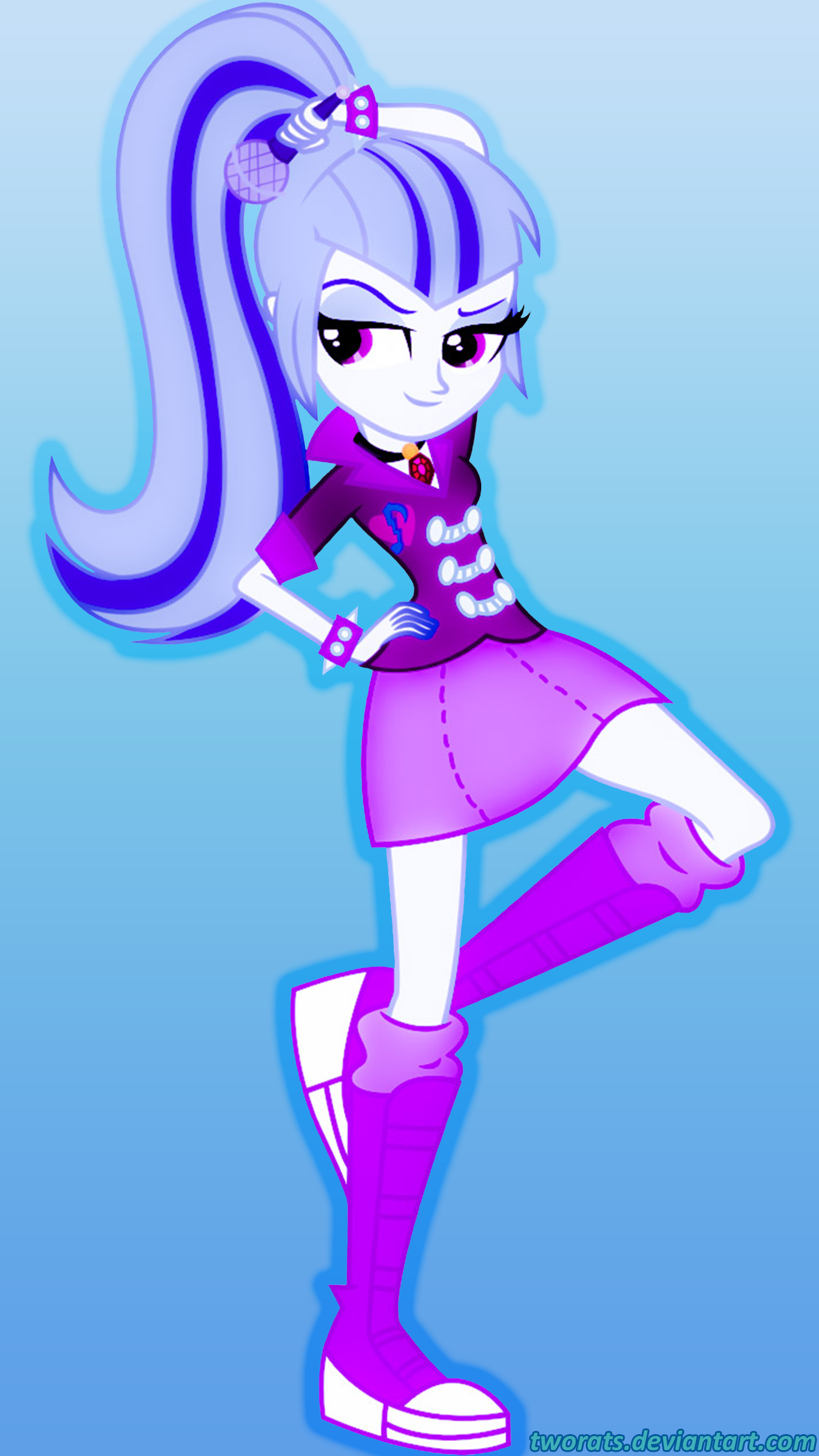 Description: A cartoon girl with long hair and boots on her feet.