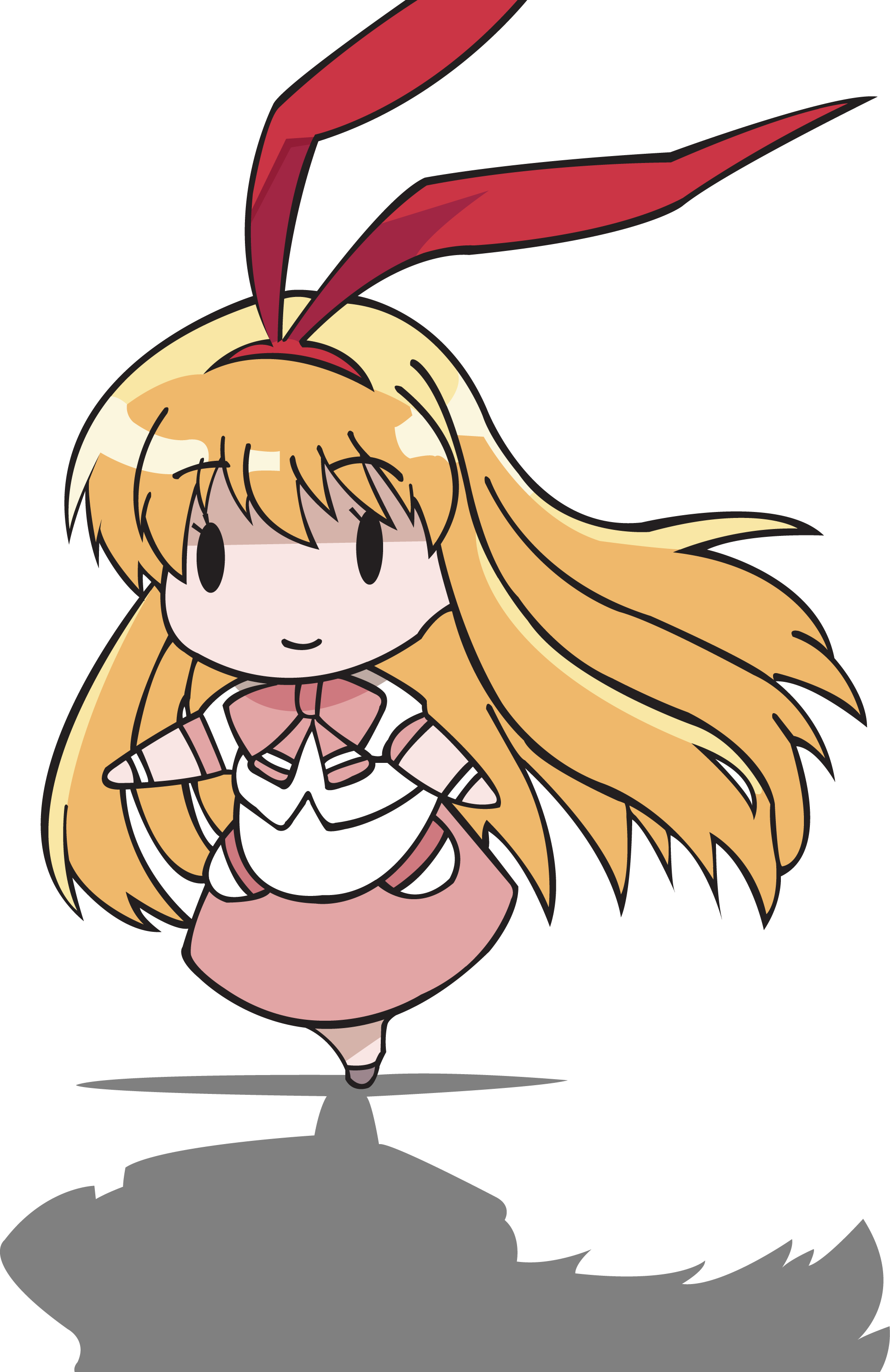 Description: A cartoon girl with a red bow on her head and a white shirt on her shoulders.