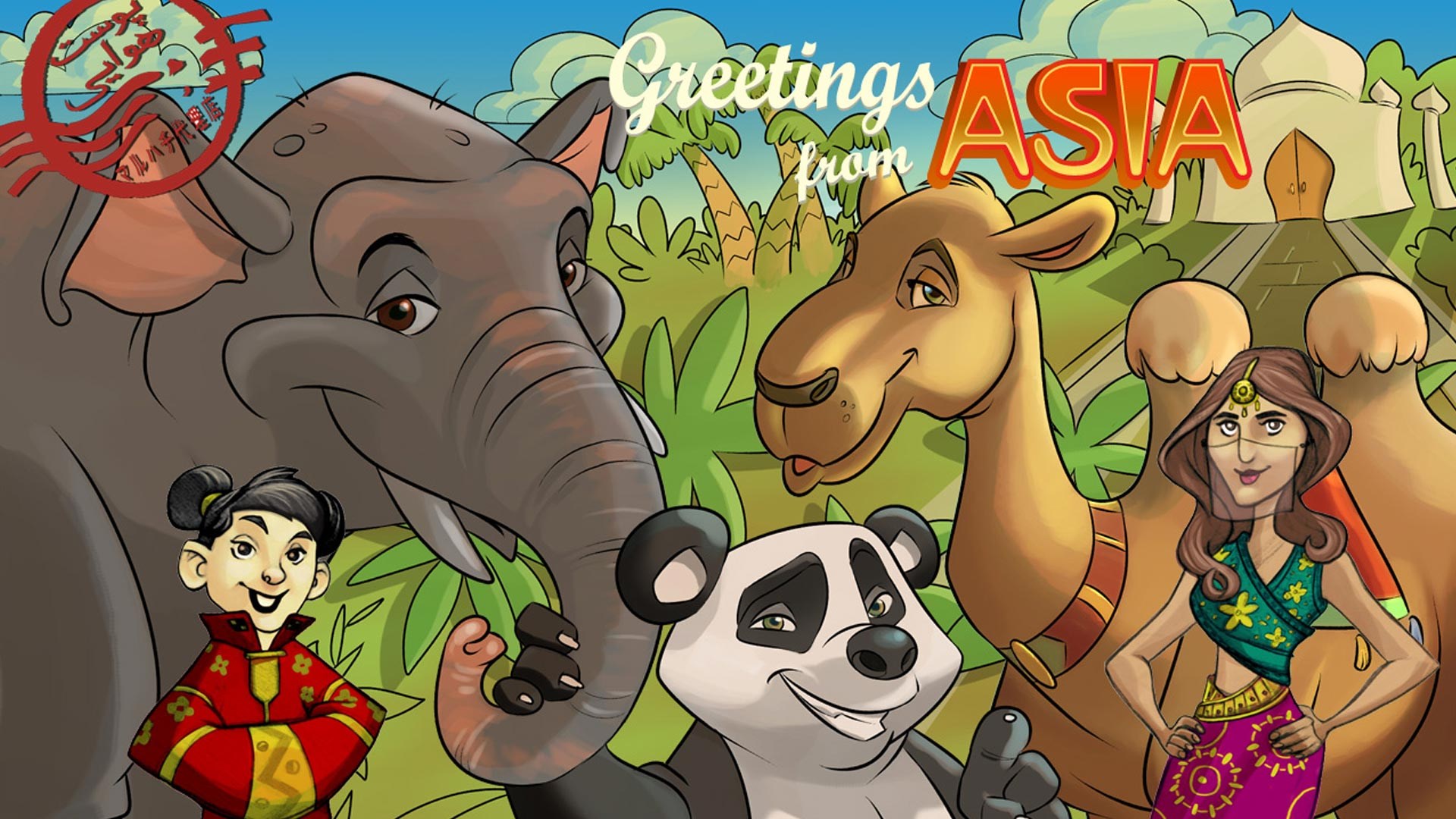 Description: A cartoon of a group of people standing in front of a group of animals and a man in a red shirt.