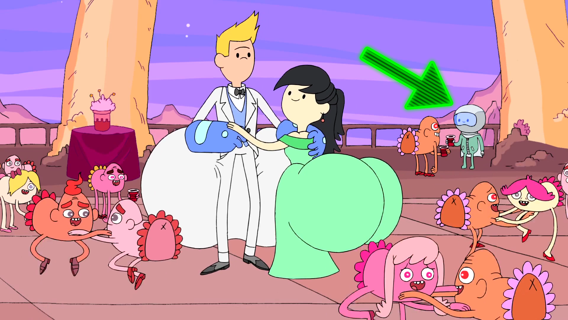 Description: A cartoon of a man and woman standing next to each other with a bunch of cats around them and a green arrow pointing to the man.