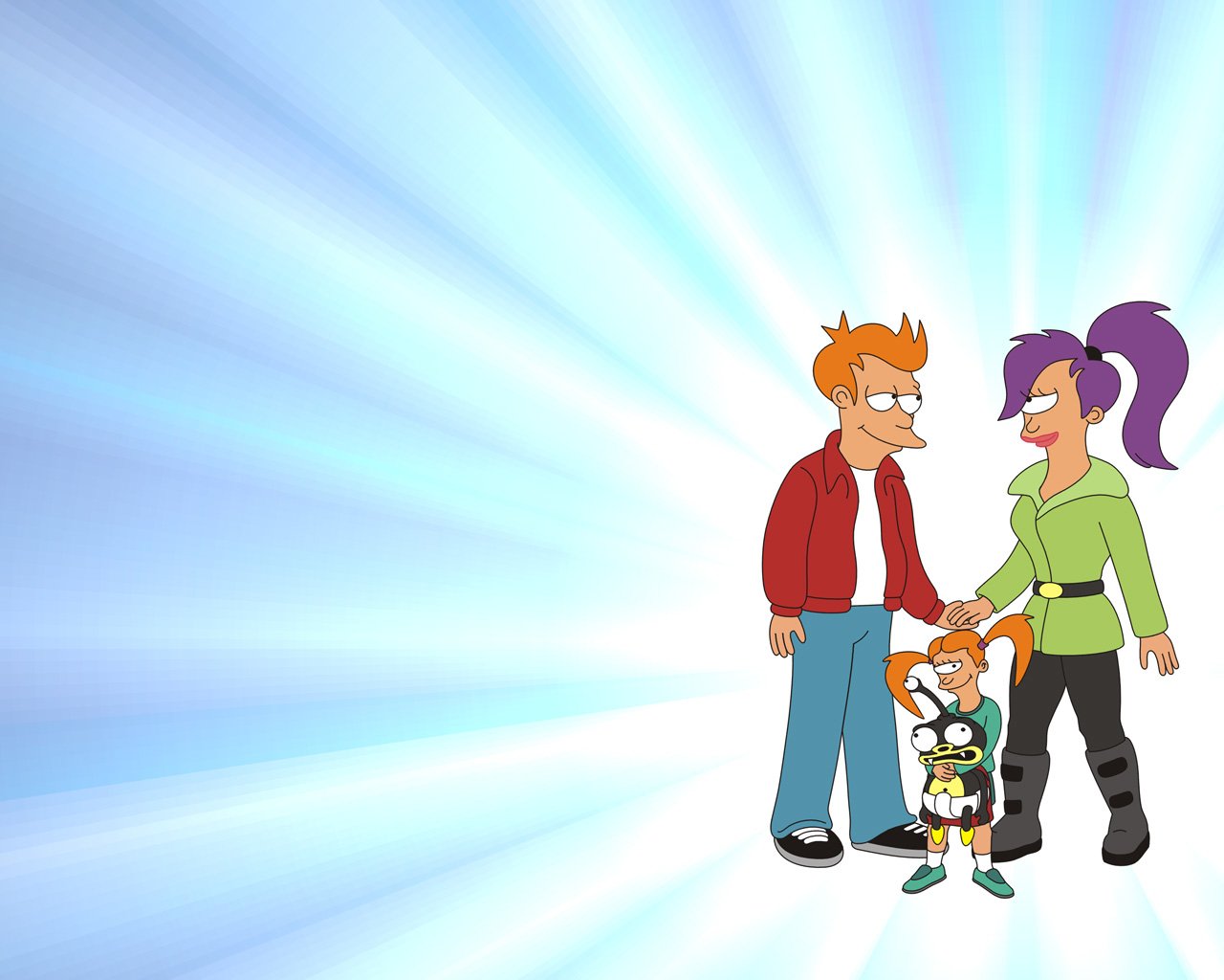 Description: A cartoon of a man and woman shaking hands with a child on a skateboard in front of a blue background.