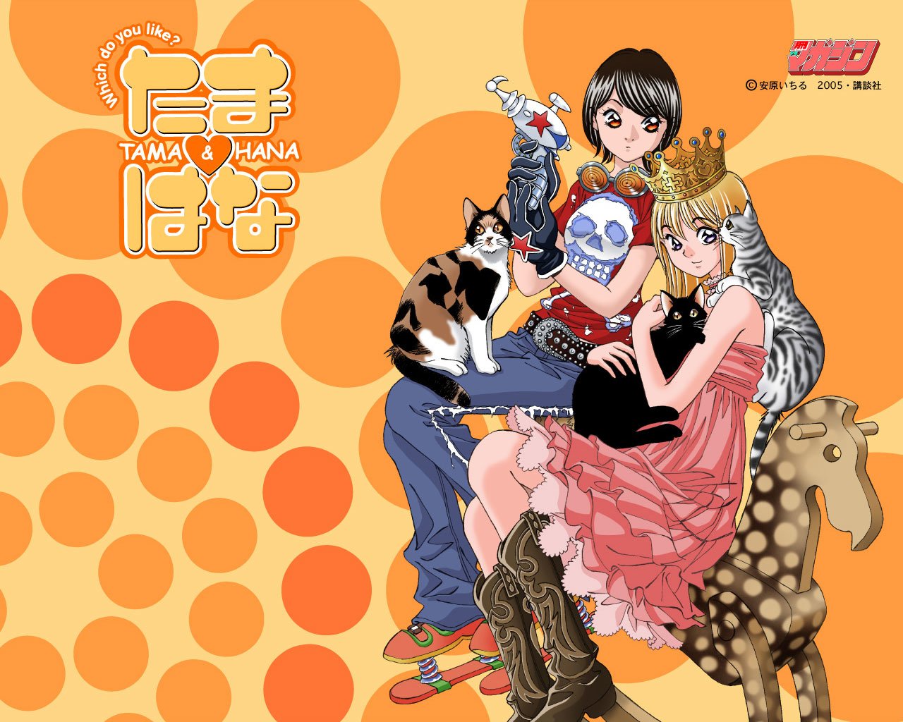 Description: A cartoon picture of a man and woman on a horse with cats and a dog on the back of the horse.