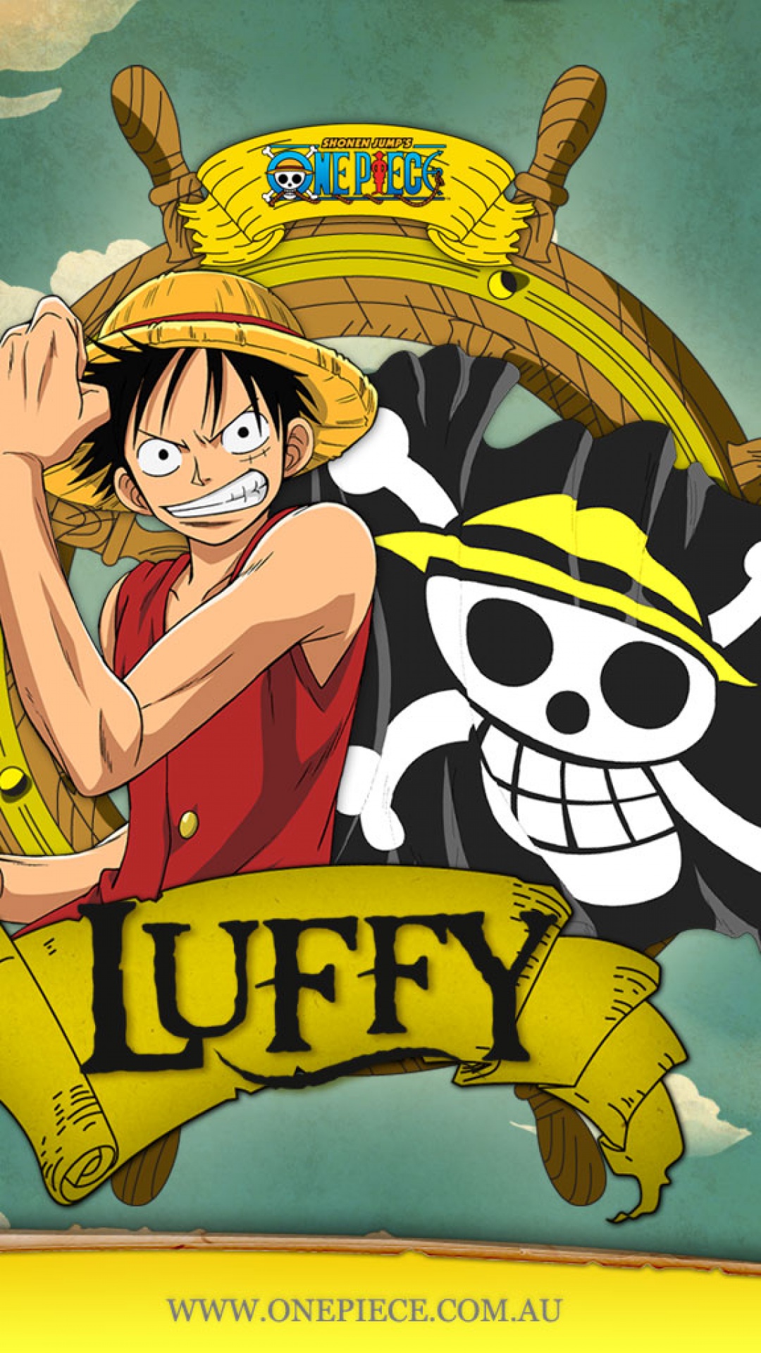 Description: A cartoon character with a pirate hat and a banner with a skull and crossbones on it.