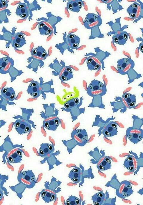 Description: A pattern of blue and pink cartoon characters on a white background with a green and blue cartoon character on the bottom.