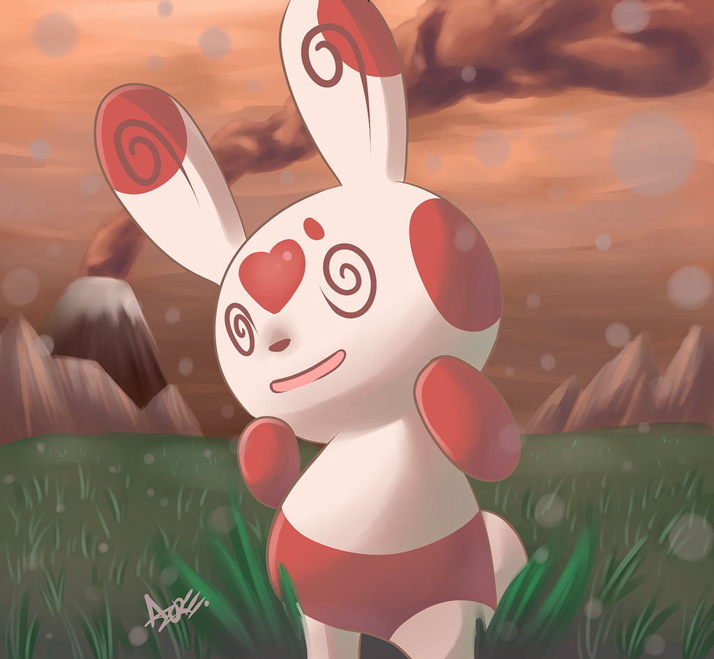 Description: A cartoon rabbit with a red heart on its chest and a red nose and tail.