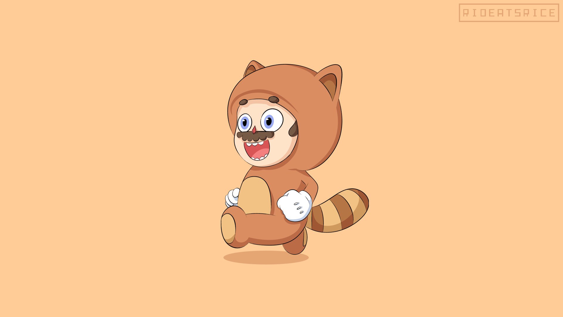 Description: A cartoon racoon running with a smile on its face and eyes.