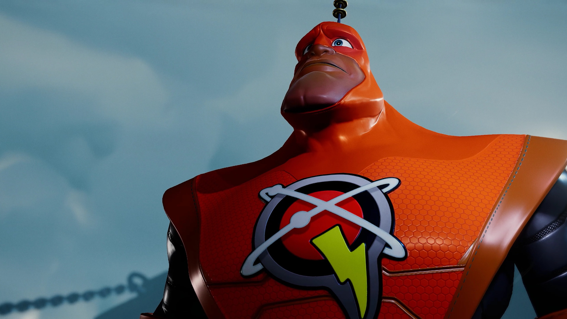Description: A cartoon character wearing a red suit and a yellow lightning bolt on his chest and chest.
