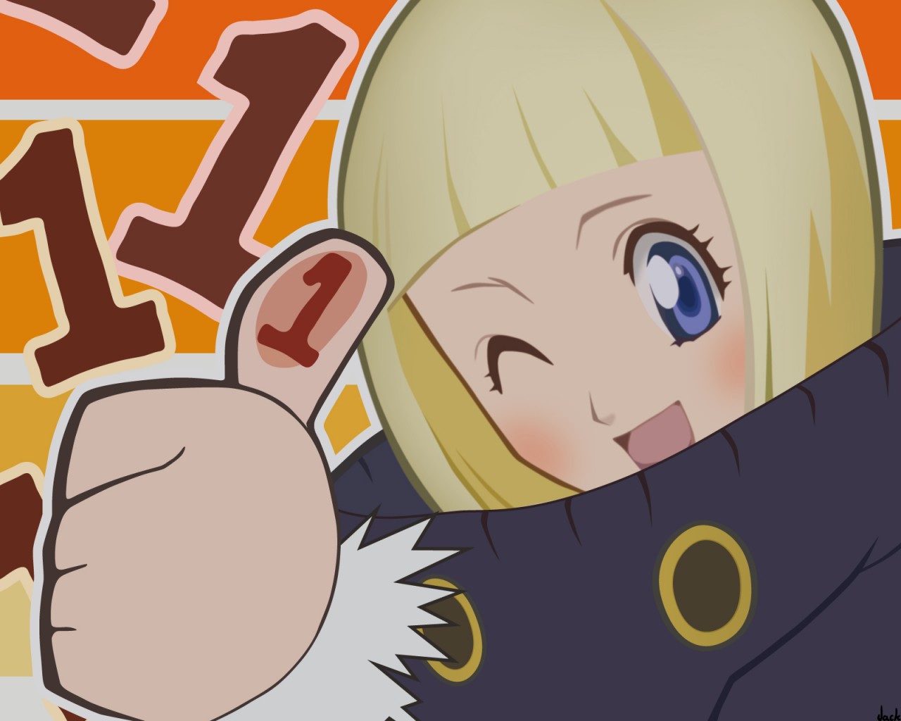 Description: A cartoon character with a big smile and a hand up in the air with the number 1 on it.