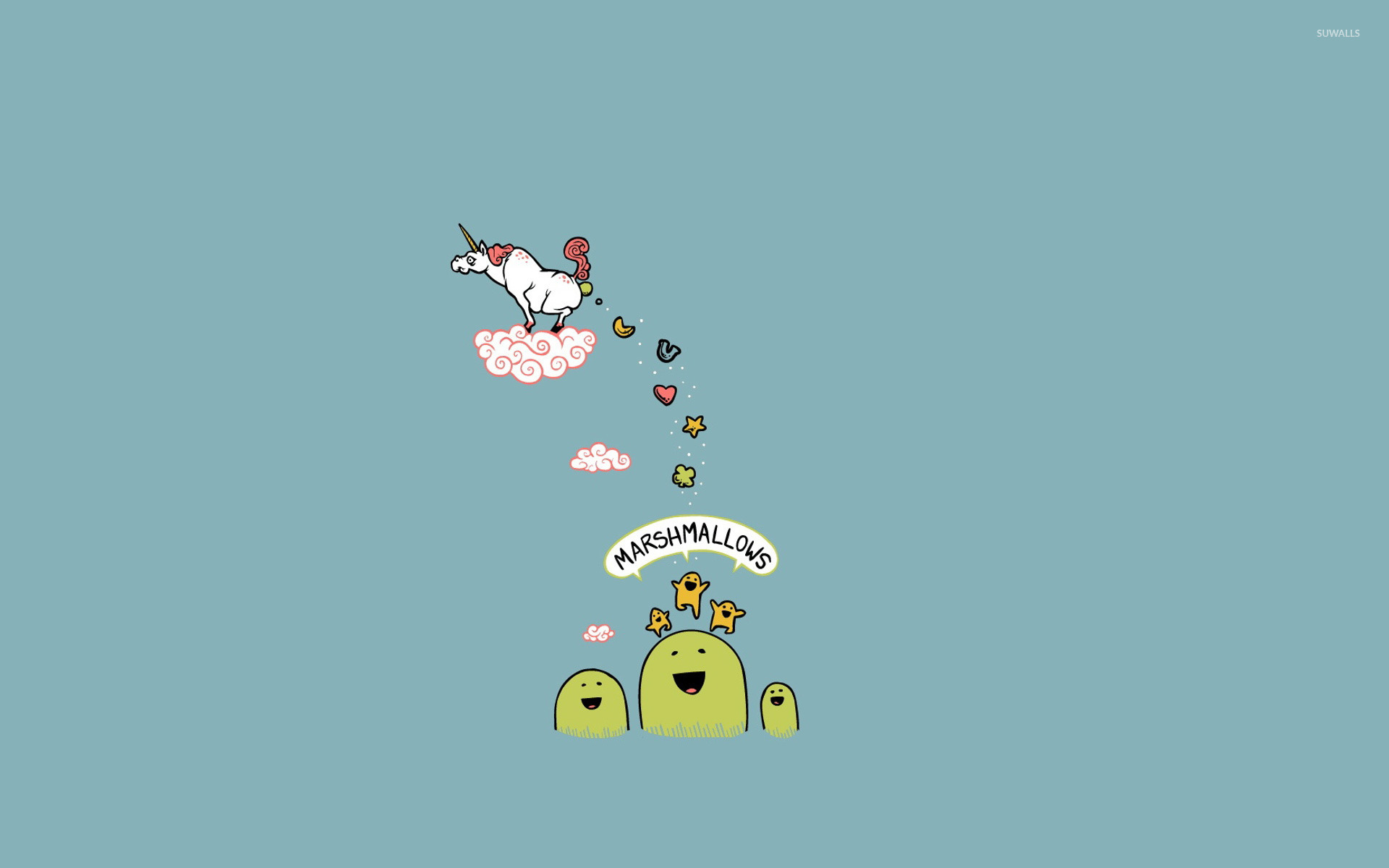 Description: A cartoon unicorn flying over a castle with a banner on it's side and a banner on the top of it.