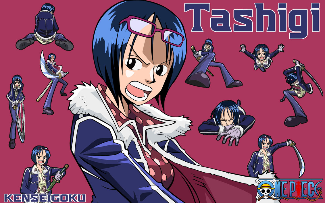 Description: A cartoon of a woman with blue hair and glasses on her face and various other characters behind her.