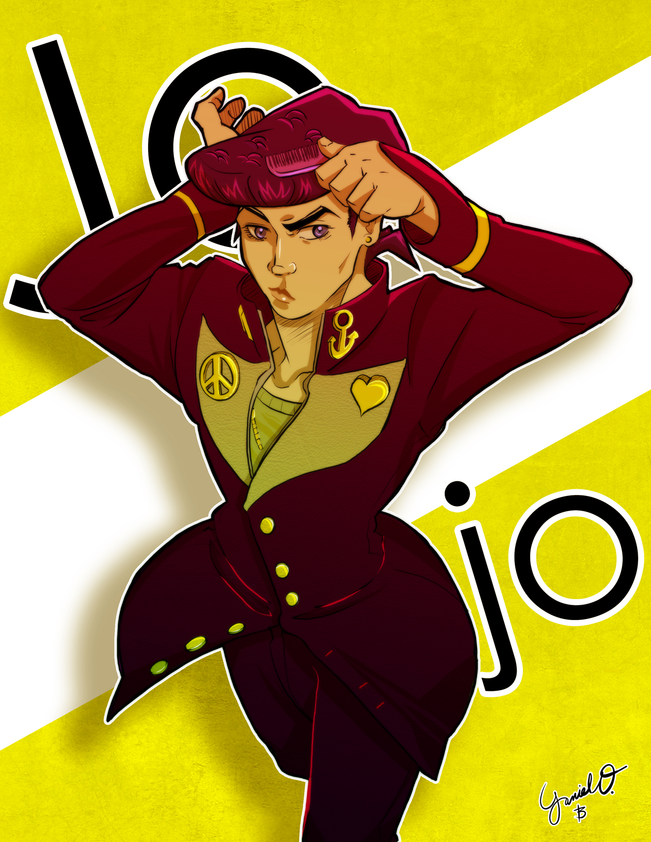 Description: A cartoon of a woman in a red suit and hat with a yellow background and a yellow and white stripe.