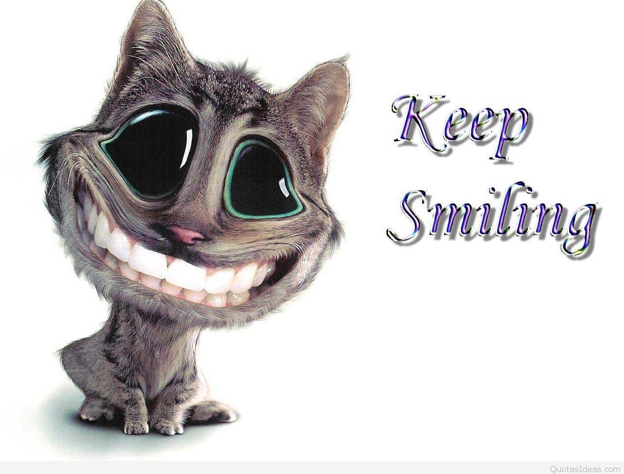Description: A cat with big eyes and a smile on its face with the words keep smiling written below it.